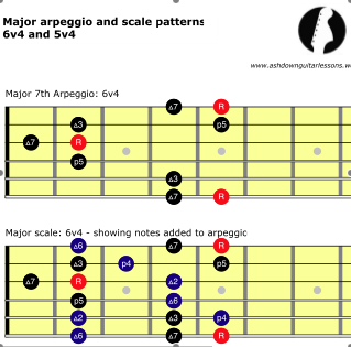 Ashdown Guitar Lessons is delighted to make available to everyone who wants it a set of charts giving fretboard patterns for Major scales and their associated Major 7th arpeggios.